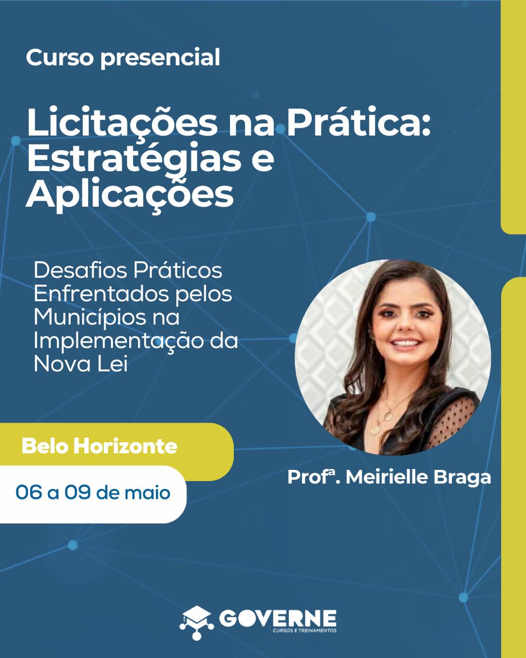Participe do curso presencial “Licitações na Prática: Estratégias e Aplicações”, com a Prof.ª Meirielle Braga, e aprenda a aplicar a nova legislação com segurança e eficácia.
